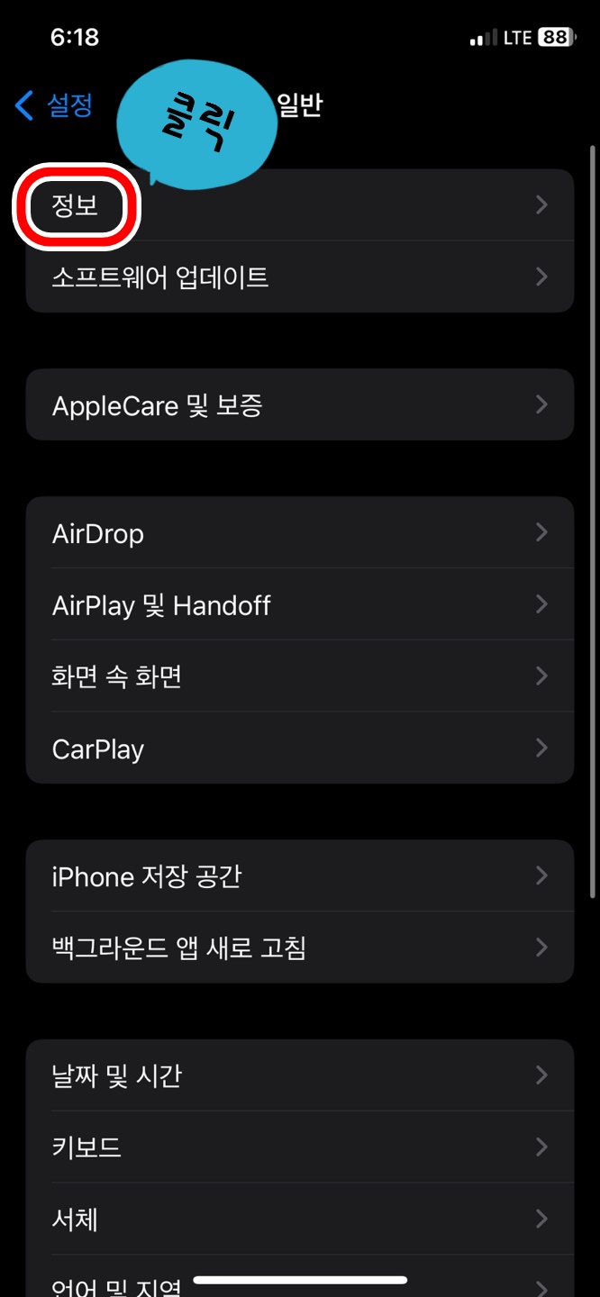 그런 다음 정보와 이름을 클릭하고 들어가주세요.
