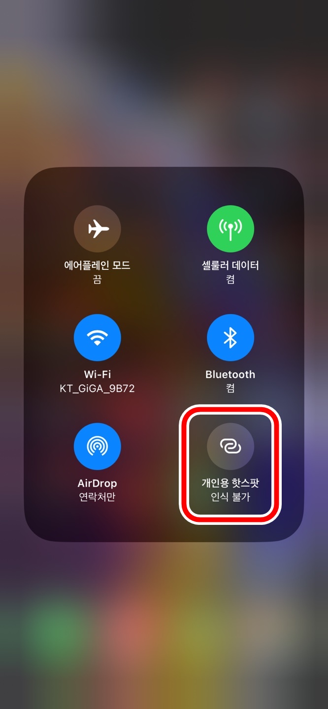 이게 활성화가 꺼지면 개인용 핫스팟을 클릭할 수 없게 됩니다.