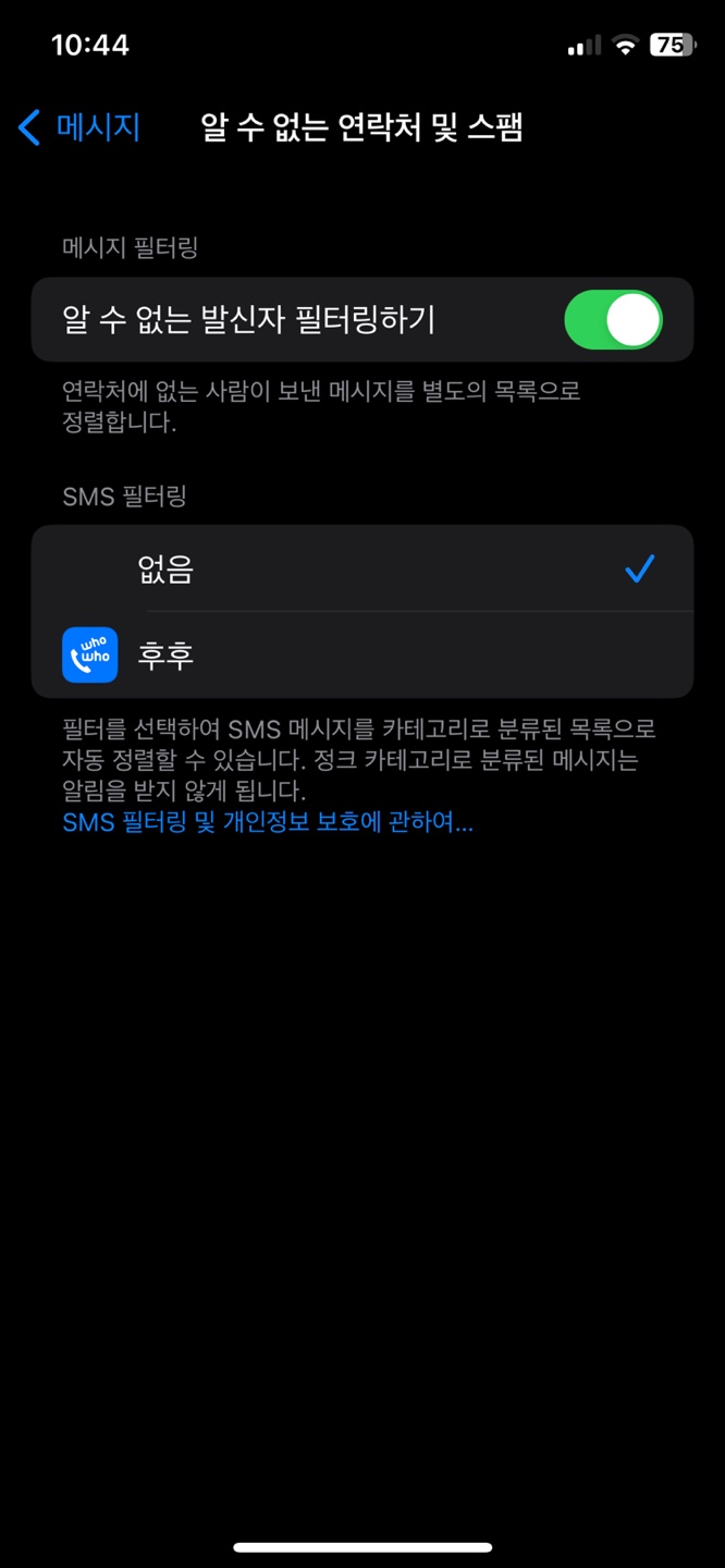 스팸 문자 차단을 위한 설정